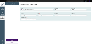 The Destinations / Ports application allows administrators to manage airports (and potentially other ports) used within the system.