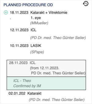 - If confirmed in current encounter--> Label: Procedure that was confirmed + Responsible person form selected encounter, bellow: EN: "Confirmed by:"/ DE: "Bestätigt durch" Responsible person form current encounter